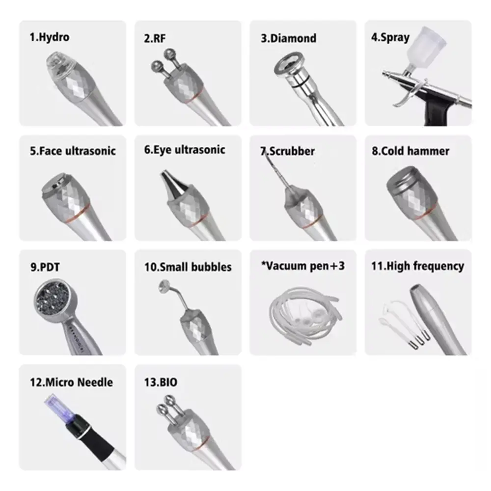 Hydro Facial Probu: Vakum ve suyu birleştirerek gözenekleri sebum, siyah nokta ve ölü hücrelerden arındırır. Aynı anda cilde solüsyon infüzyonu yaparak nem dengesini sağlar.